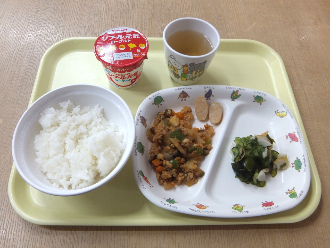 HOME 園の様子 毎日の給食とおやつ 毎日の給食とおやつ 2025/09/12 ☆今日の給食 ・ごはん ・キッズチリコンカン ・ボイルウインナー ・きゅうりの酢の物 ・ヨーグルト ・麦茶☆3時のおやつ ・セサミトースト ・牛乳 今日の給食 3時のおやつ BACK HOME
