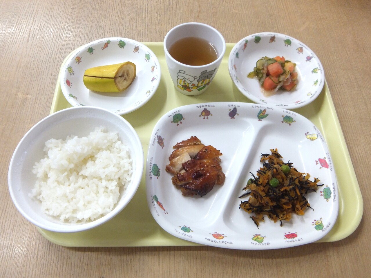 HOME 園の様子 毎日の給食とおやつ 毎日の給食とおやつ 2025/09/16 ☆今日の給食 ・ごはん ・鶏肉のスタミナ焼き ・ツナひじき ・トマトサラダ ・バナナ ・麦茶☆3時のおやつ ・パンプキンジャムサンド ・牛乳 今日の給食 3時のおやつ BACK HOME