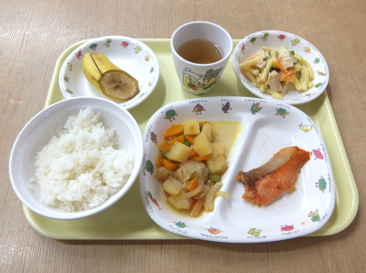 HOME 園の様子 毎日の給食とおやつ 毎日の給食とおやつ 2025/09/22 ☆今日の給食 ・ごはん ・鮭の西京焼き ・肉じゃが ・マカロニサラダ ・バナナ ・麦茶☆3時のおやつ ・ピザトースト ・乳飲料(低脂肪) 今日の給食 3時のおやつ BACK HOME
