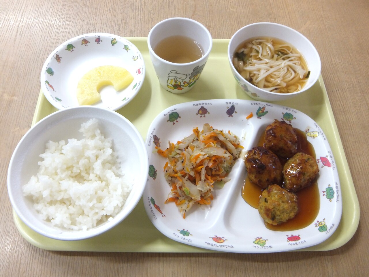 HOME 園の様子 毎日の給食とおやつ 毎日の給食とおやつ 2025/10/01 ☆今日の給食 ・ごはん ・鶏ごぼうつくね ・きゃべつのゆかり和え ・ふしめんの味噌󠄀汁 ・パイン ・麦茶☆3時のおやつ ・さつまいもとりんごのケーキ ・乳飲料(低脂肪) 今日の給食 3時のおやつ BACK HOME