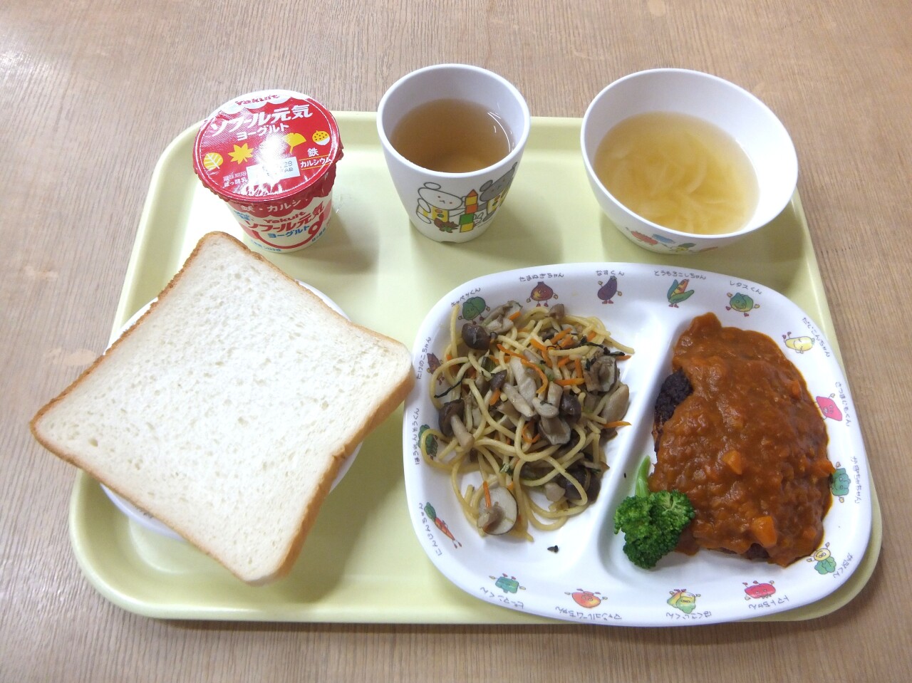 HOME 園の様子 毎日の給食とおやつ 毎日の給食とおやつ 2025/10/08 ☆今日の給食 ・パン ・ハンバーグカレーソース ・和風きのこスパゲッティー ・たまねぎスープ ・ヨーグルト ・麦茶☆3時のおやつ ・ごはんおやき ・牛乳 今日の給食 3時のおやつ BACK HOME