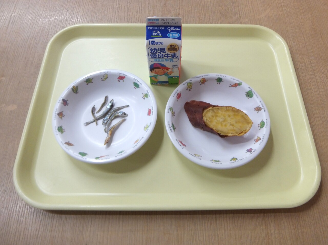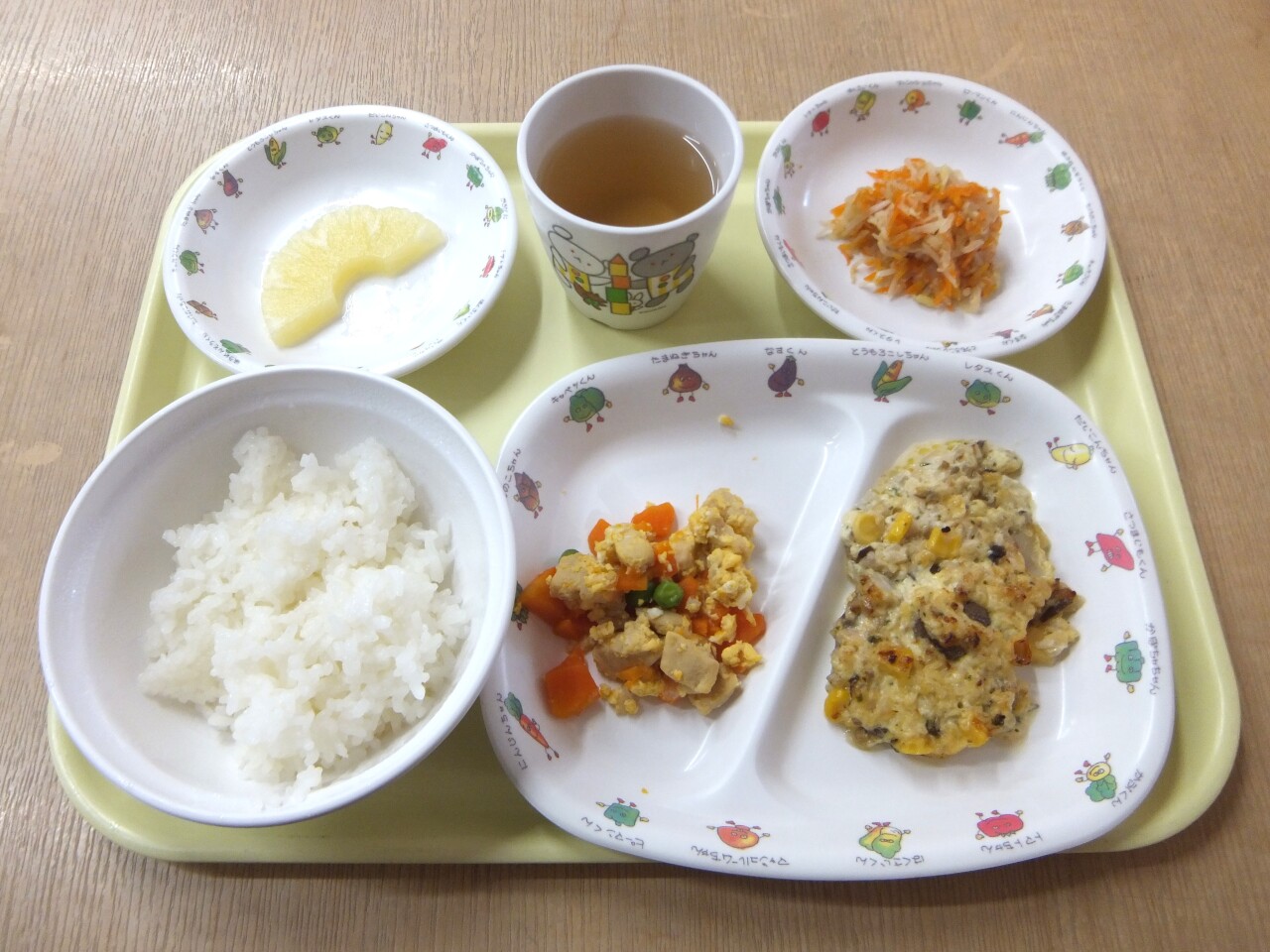 HOME 園の様子 毎日の給食とおやつ 毎日の給食とおやつ 2025/10/14 ☆今日の給食 ・ごはん ・魚のマヨコーン焼き ・高野豆腐の卵とじ ・千切り野菜の中華風サラダ ・パイン ・麦茶☆3時のおやつ ・焼きいも、小魚 ・牛乳 今日の給食 3時のおやつ BACK HOME