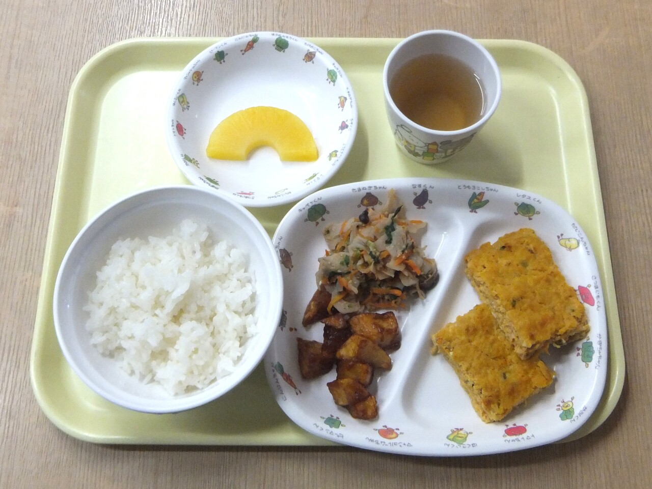 HOME 園の様子 毎日の給食とおやつ 毎日の給食とおやつ 2025/10/20 ☆今日の給食 ・ごはん ・和風ミートローフ ・じゃがいものBBQ風 ・秋野菜のごま和え ・パイン ・麦茶☆3時のおやつ ・乳飲料(低脂肪) ・ベジタブルリゾット 今日の給食 3時のおやつ BACK HOME
