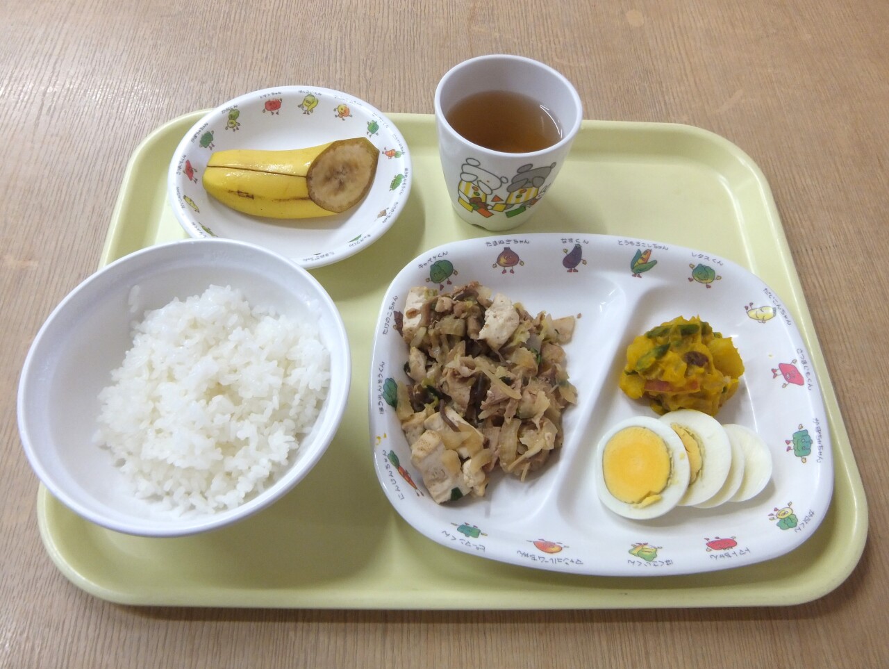 HOME 園の様子 毎日の給食とおやつ 毎日の給食とおやつ 2025/10/23 ☆今日の給食 ・ごはん ・すき焼き風煮 ・ゆで卵 ・かぼちゃとベーコンのサラダ ・バナナ ・麦茶☆3時のおやつ ・のりチーズトースト ・牛乳 今日の給食 3時のおやつ BACK HOME