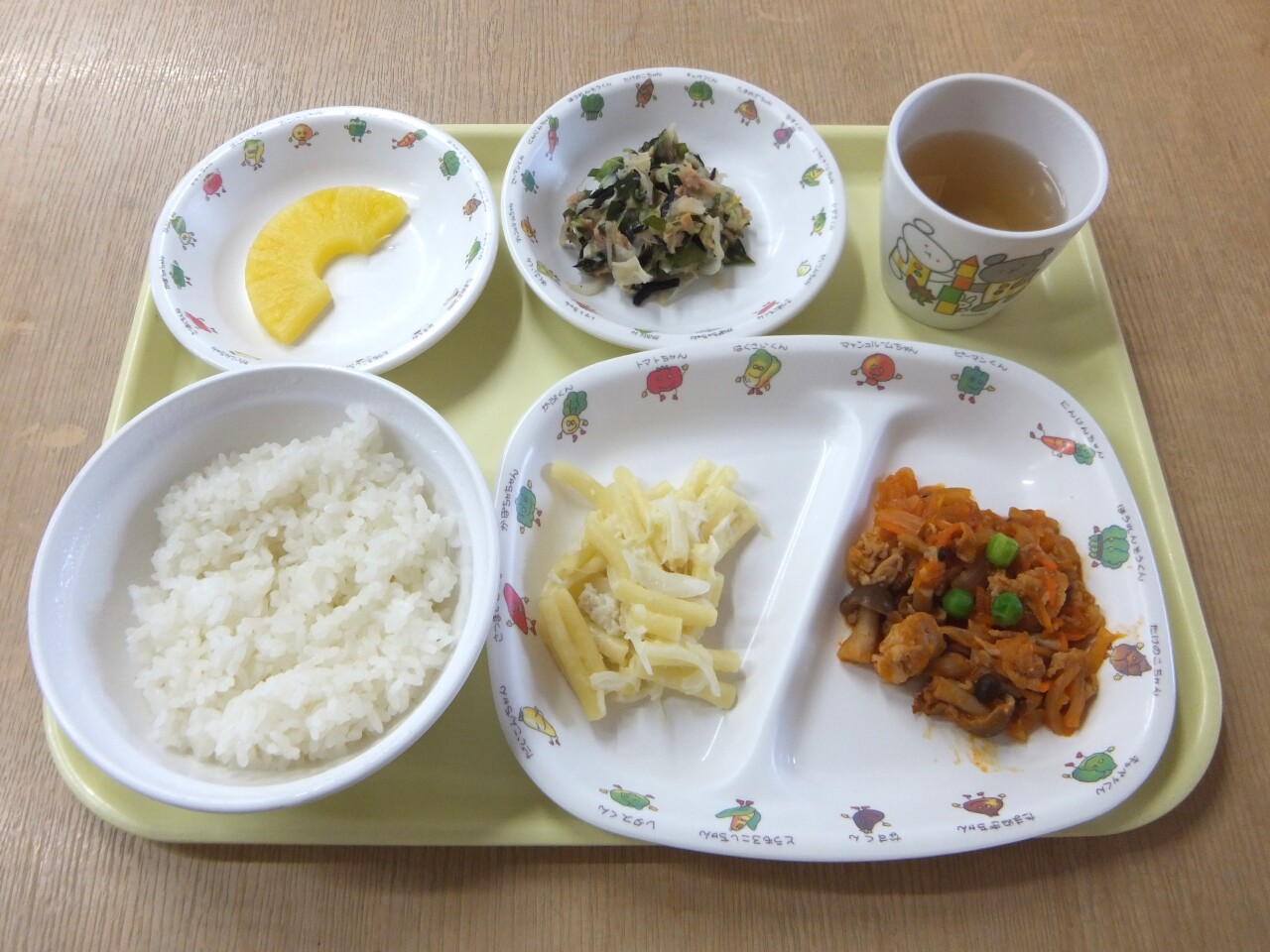 HOME 園の様子 毎日の給食とおやつ 毎日の給食とおやつ 2025/10/27 ☆今日の給食 ・ごはん ・豚肉のケチャップ煮 ・マカロニのミルク煮 ・わかめとシーチキンの酢の物 ・パイン ・麦茶☆3時のおやつ ・フルーツコーンフレーク ・牛乳 今日の給食 3時のおやつ BACK HOME