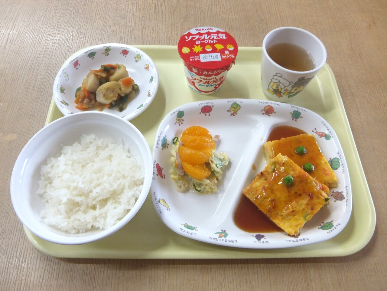 HOME 園の様子 毎日の給食とおやつ 毎日の給食とおやつ 2025/11/07 ☆今日の給食 ・ごはん ・天津風卵焼き ・さといものそぼろ煮 ・きゃべつとみかんのサラダ ・ヨーグルト ・麦茶☆3時のおやつ ・フルーツコーンフレーク ・牛乳 今日の給食 3時のおやつ BACK HOME
