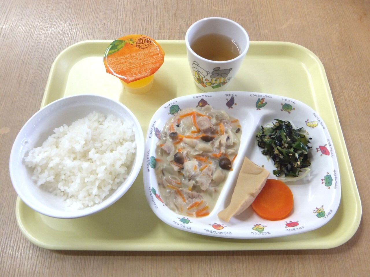 HOME 園の様子 毎日の給食とおやつ 毎日の給食とおやつ 2025/11/11 ☆今日の給食 ・ごはん ・豚肉のクリーム煮 ・高野豆腐の含め煮 ・海藻の酢の物 ・セリー ・麦茶☆3時のおやつ ・バナナブレッド ・牛乳 今日の給食 3時のおやつ BACK HOME