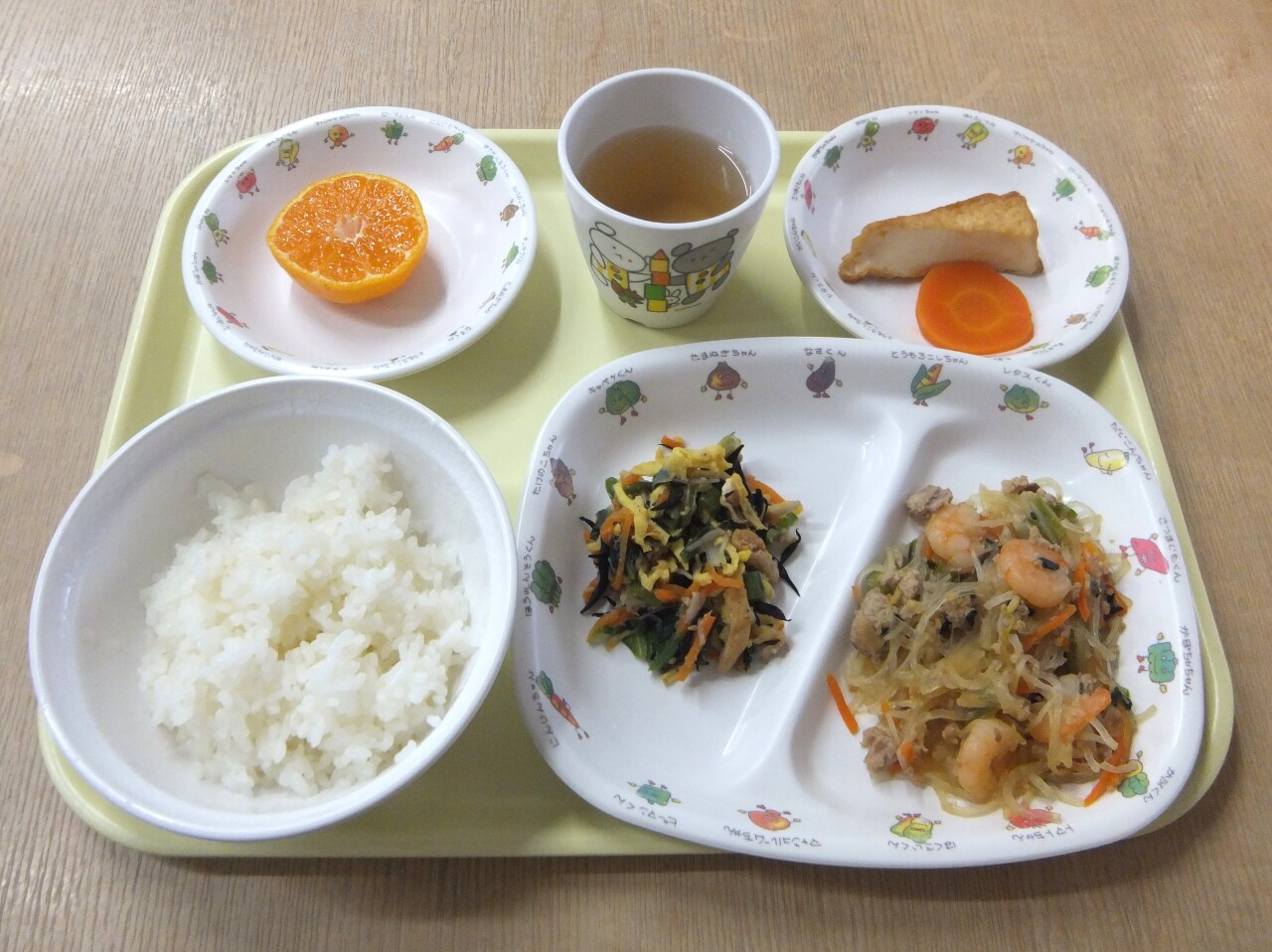 HOME 園の様子 毎日の給食とおやつ 毎日の給食とおやつ 2025/11/13 ☆今日の給食 ・ごはん ・春雨とエビの中華炒め ・厚揚げと人参の炊き合わせ ・五目和え ・みかん ・麦茶☆3時のおやつ ・みそおじや ・牛乳 今日の給食 3時のおやつ BACK HOME