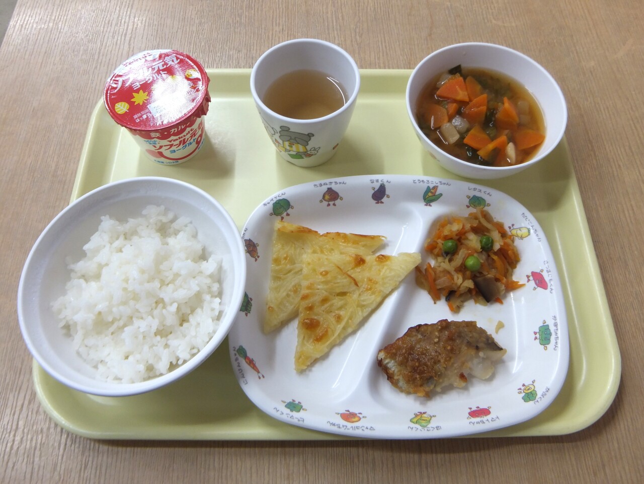 HOME 園の様子 毎日の給食とおやつ 毎日の給食とおやつ 2025/11/20 ☆今日の給食 ・ごはん ・魚の味噌󠄀ごま焼き ・じゃがいものガレット ・切干大根煮 ・かぶの味噌󠄀汁 ・ヨーグルト ・麦茶☆3時のおやつ ・さつまいも小町 ・牛乳 今日の給食 3時のおやつ BACK HOME