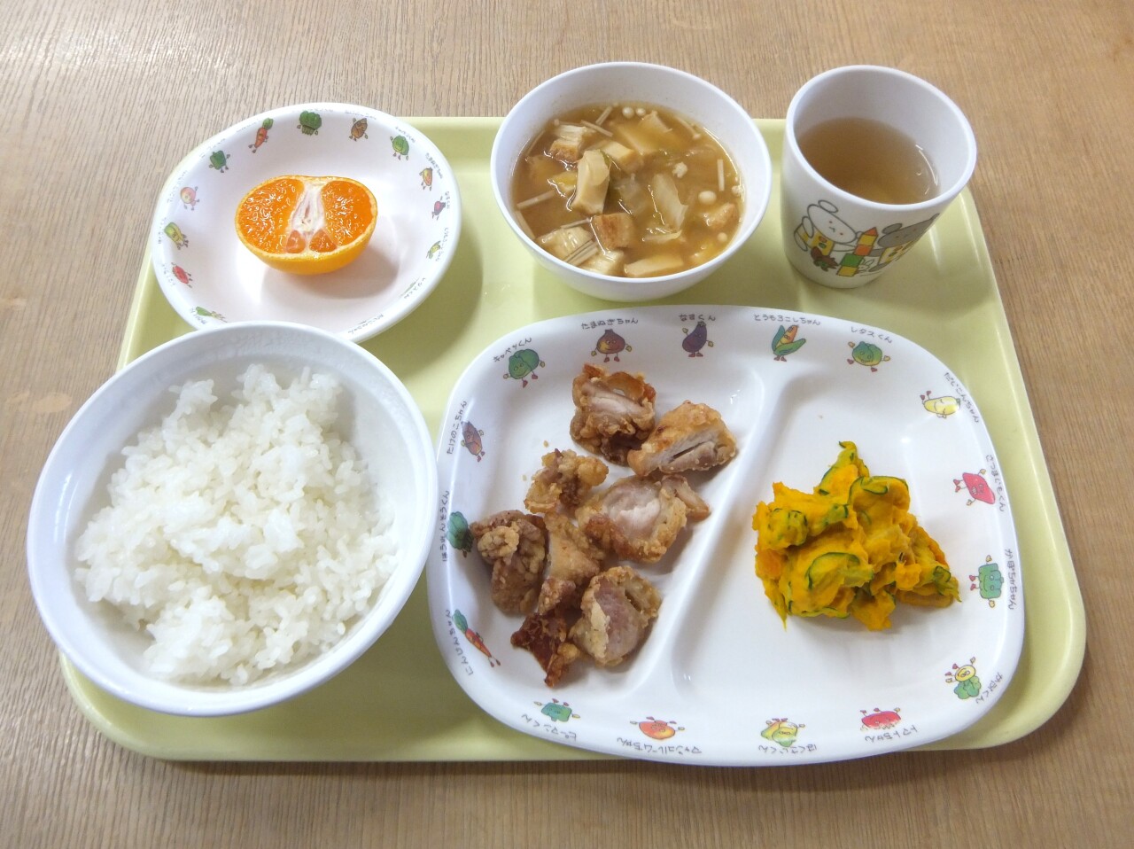 HOME 園の様子 毎日の給食とおやつ 毎日の給食とおやつ 2025/11/21 ☆今日の給食 ・ごはん ・鶏肉のから揚げ ・かぼちゃのサラダ ・はくさいの味噌󠄀汁 ・みかん ・麦茶☆3時のおやつ ・フレンチトースト ・牛乳 今日の給食 3時のおやつ BACK HOME