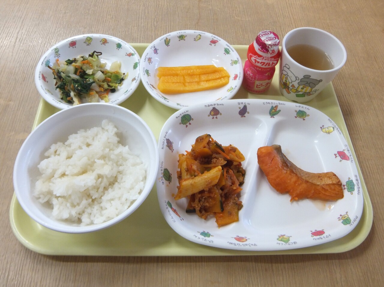 HOME 園の様子 毎日の給食とおやつ 毎日の給食とおやつ 2025/11/26 ☆今日の給食 ・ごはん ・魚のレモン焼き ・ミートペンネ ・青菜の塩昆布和え ・柿、ヤクルト ・麦茶☆3時のおやつ ・プリン、せんべい ・牛乳 今日の給食 3時のおやつ BACK HOME