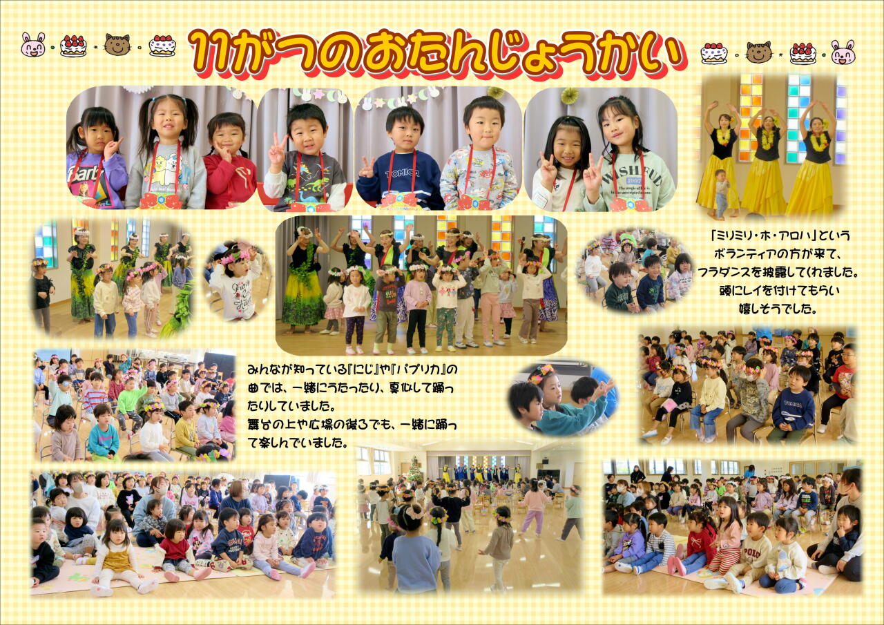 HOME 園の様子 11月の誕生会を掲載しました 11月の誕生会を掲載しました 2025/12/02 11月生まれのおともだち、おたんじょうびおめでとうございます!今日のお誕生会では、フラダンスのボランティアさんが、きれいな踊りを披露してくれましたね(*^-^*)そして、一緒に踊ったりして、楽しかったね。 BACK HOME