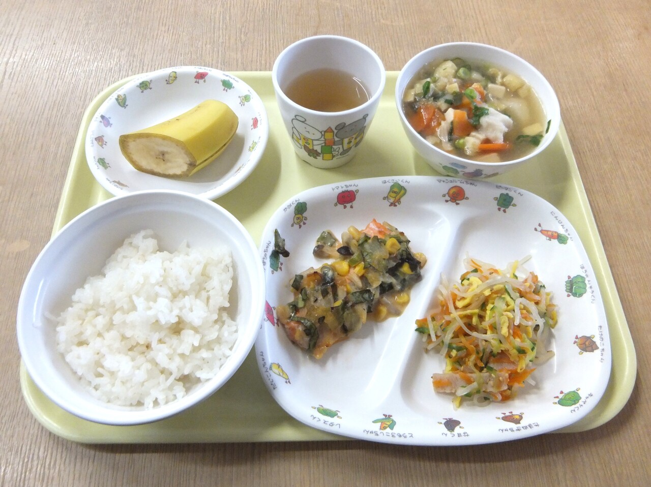HOME 園の様子 毎日の給食とおやつ 毎日の給食とおやつ 2025/12/05 ☆今日の給食 ・ごはん ・鮭のちゃんちゃん焼き ・春雨の酢の物 ・けんちん汁 ・バナナ ・麦茶☆3時のおやつ ・ヨーグルトケーキ ・乳飲料(低脂肪) 今日の給食 3時のおやつ BACK HOME