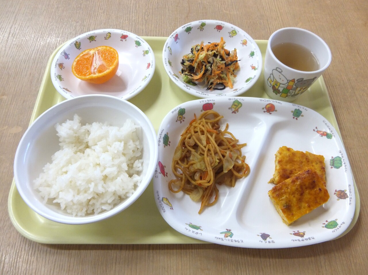 HOME 園の様子 毎日の給食とおやつ 毎日の給食とおやつ 2025/12/09 ☆今日の給食 ・ごはん ・ふくさ卵 ・カレー焼きそば ・野菜のひじき和え ・みかん ・麦茶☆3時のおやつ ・キャロット蒸しパン ・牛乳 今日の給食 3時のおやつ BACK HOME
