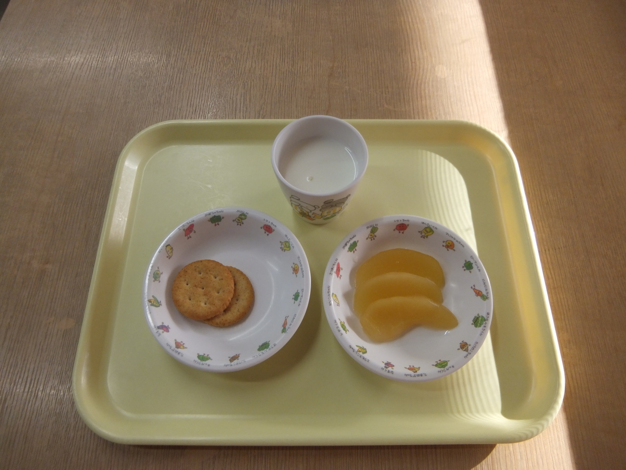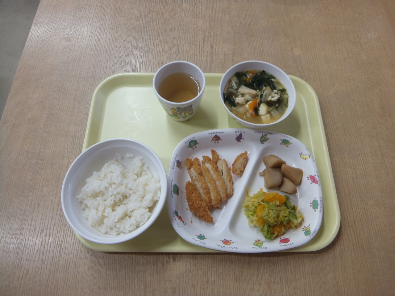 HOME 園の様子 毎日の給食とおやつ 毎日の給食とおやつ 2025/12/12 ☆今日の給食 ・ごはん ・塩麹のチキンカツ ・さといもの甘煮 ・キャベツとみかんのサラダ ・味噌汁☆3時のおやつ ・りんごのコンポート ・クラッカー ・牛乳 今日の給食 3時のおやつ BACK HOME