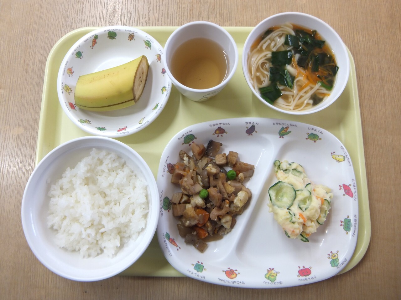 HOME 園の様子 毎日の給食とおやつ 毎日の給食とおやつ 2026/01/06 ☆今日の給食 ・ごはん ・筑前煮 ・ポテトサラダ ・ふしめん汁 ・バナナ ・麦茶☆3時のおやつ ・焼きおにぎり ・牛乳 今日の給食 3時のおやつ BACK HOME