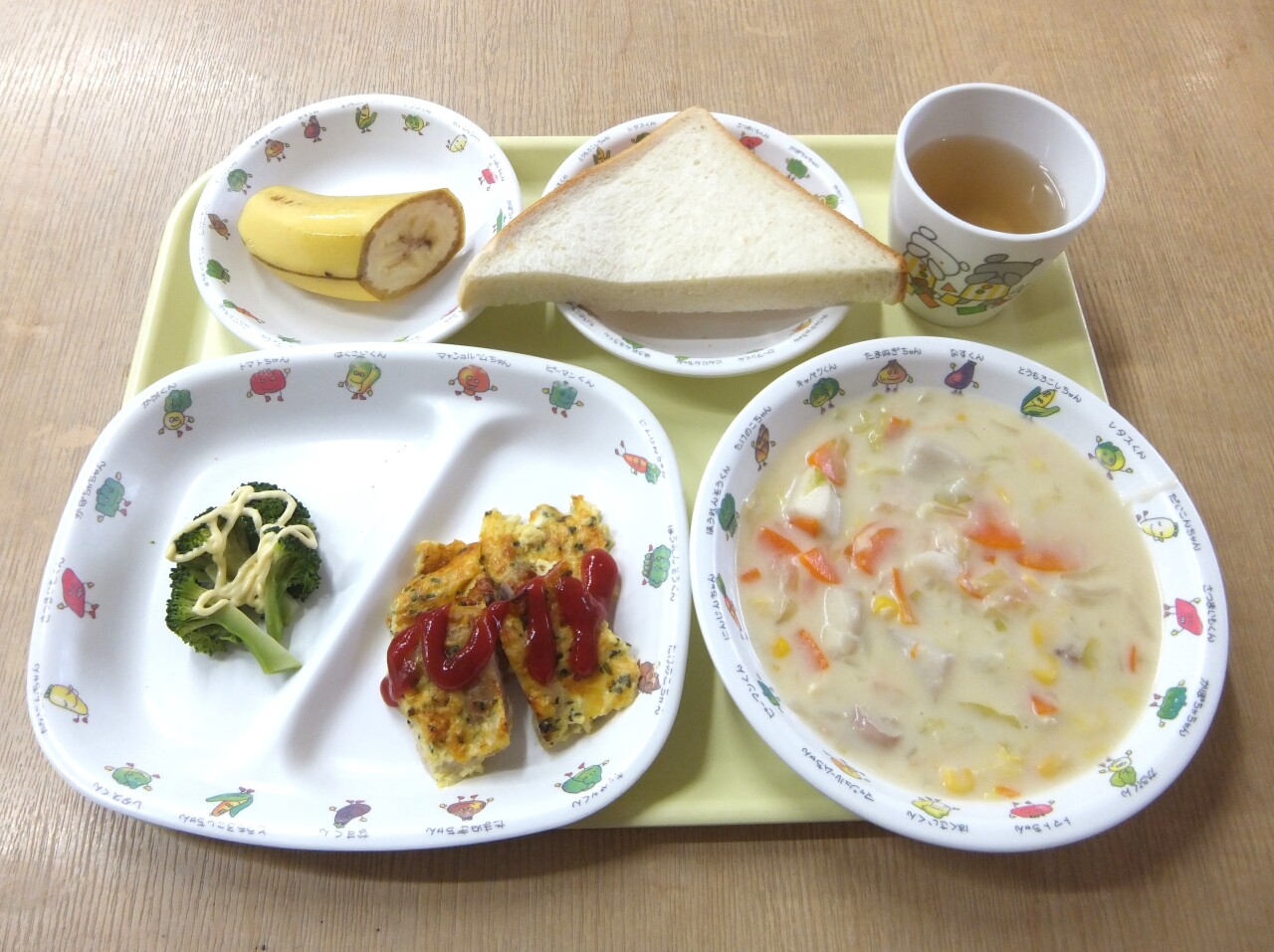 HOME 園の様子 毎日の給食とおやつ 毎日の給食とおやつ 2026/01/13 ☆今日の給食 ・パン ・チキンピカタ ・コロコロ野菜のクリームスープ ・バナナ ・麦茶☆3時のおやつ ・スイートポテト、せんべい ・牛乳 今日の給食 3時のおやつ BACK HOME