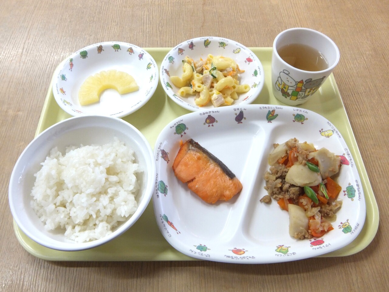 HOME 園の様子 毎日の給食とおやつ 毎日の給食とおやつ 2026/01/23 ☆今日の給食 ・ごはん ・鮭のレモン焼き ・さといものそぼろ煮 ・マカロニサラダ ・パイン ・麦茶☆3時のおやつ 引き渡し訓練の為、訓練用に準備しているおやつに変更しました。 今日の給食 BACK HOME
