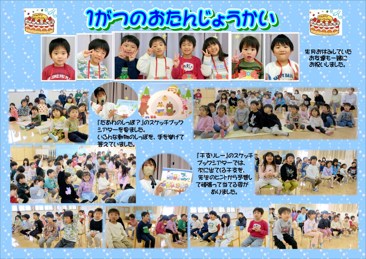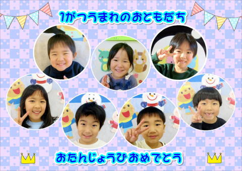 園では、毎月お誕生会を開き、その月に生まれたお友だちのお誕生日をみんなでお祝いしています。