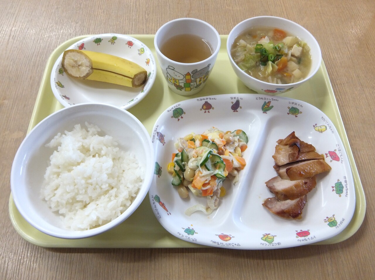 HOME 園の様子 毎日の給食とおやつ 毎日の給食とおやつ 2026/03/17 ☆今日の給食 ・ごはん ・鶏肉のマーマレード焼き ・大豆サラダ ・豆乳味噌汁 ・バナナ ・麦茶☆3時のおやつ ・マカロニきな粉 ・乳飲料(低脂肪) 今日の給食 3時のおやつ BACK HOME