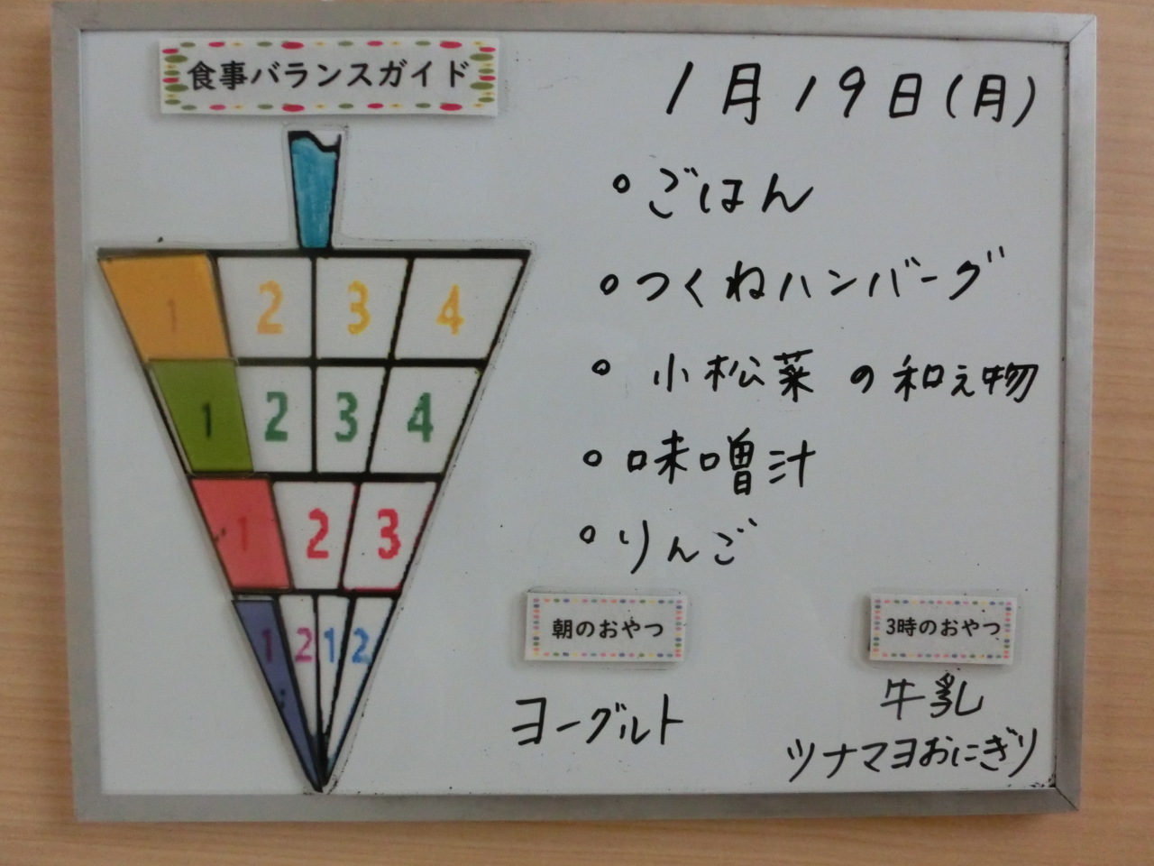 HOME 園の様子 1月19日の給食と食事バランスガイド 1月19日の給食と食事バランスガイド 2026/01/19 保育園での摂取量 今日のおやつはツナマヨおにぎりです。保育園では週1回おやつをおにぎりにしています。色々な種類にして子どもたちが飽きないように提供します。ツナマヨは人気のおにぎりです。 朝のおやつ 今日の給食 今日の給食(アレルギー対応食) 離乳食(中期食) 3時のおやつ(幼児食・アレルギー対応食) BACK HOME