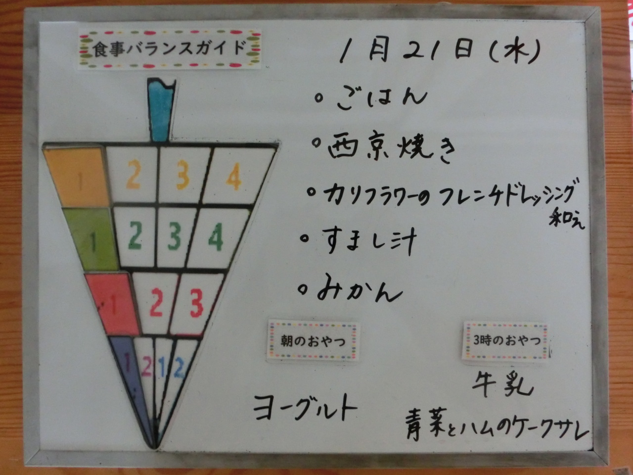 今日の副菜はカリフラワーのフレンチドレッシング和えです。園ではあまりカリフラワーを使用することはありませんが、冬が旬の野菜でビタミンCをたっぷりと含んでいます。
