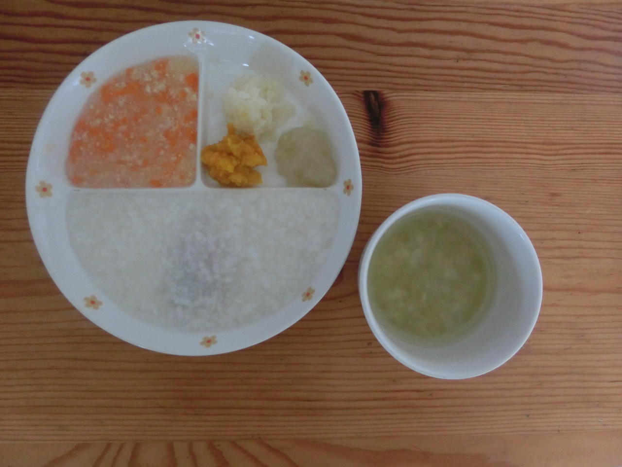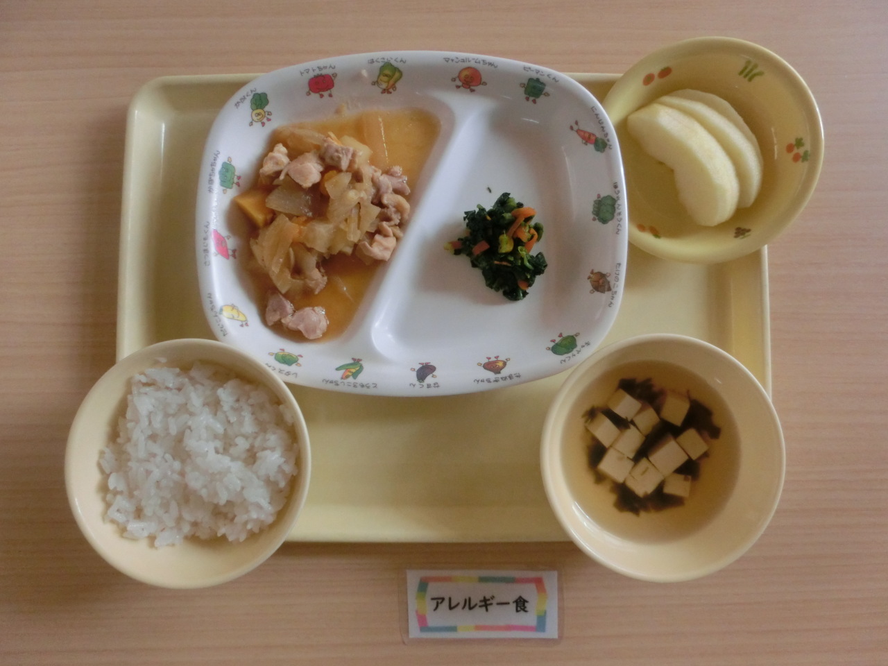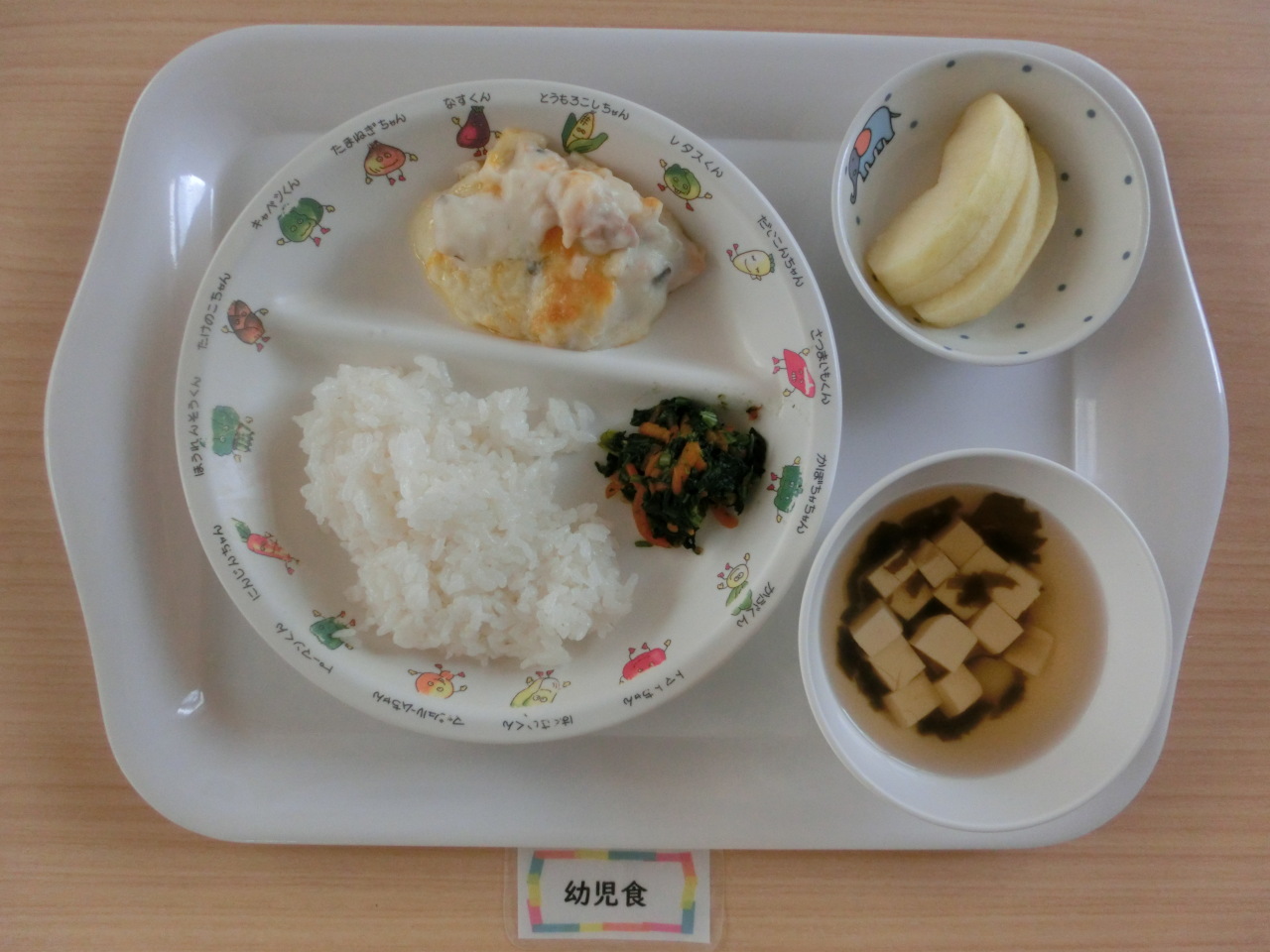 今日はきりんぐみの保育参観でした。毎朝の給食の説明を、今日はお家の方にも子どもたちと一緒に聞いていただきました。食材のパネルを使って子どもたちに野菜の名前を当ててもらい、今日、使用する食材を説明しました。子どもたちも大きな声で「たまねぎ」「にんじん」と言ってくれました。きりんぐみさんは、今日の残食0(ゼロ)でした!