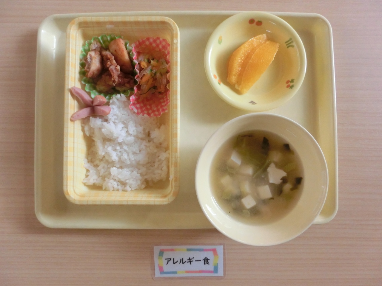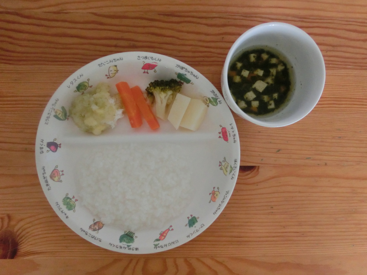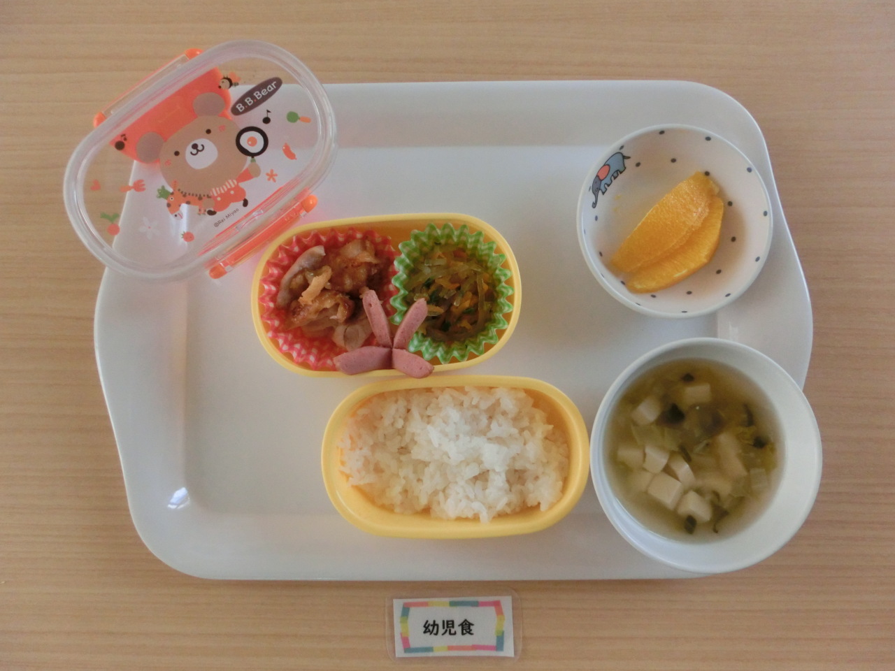 今日はきりん組さんのお弁当ランチの日でした。朝の集まりの時にお弁当箱を見せて「今日はこの中にご飯を入れるよ」というと、とても嬉しそうに話を聞いてくれました。お外には行けませんでしたが、保育室で子どもたちは円になりいつもと違う雰囲気で食べることができました。お昼寝後のおやつ時に、「先生、お弁当作ってくれてありがとう」と声をかけてくれ、とてもやさしく嬉しい気持ちになりました。