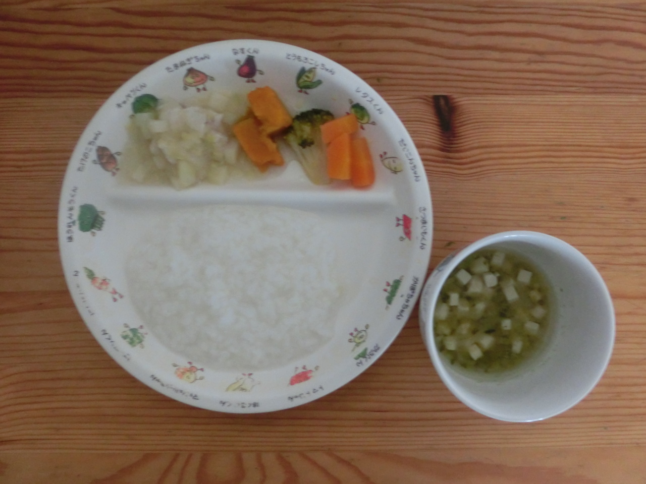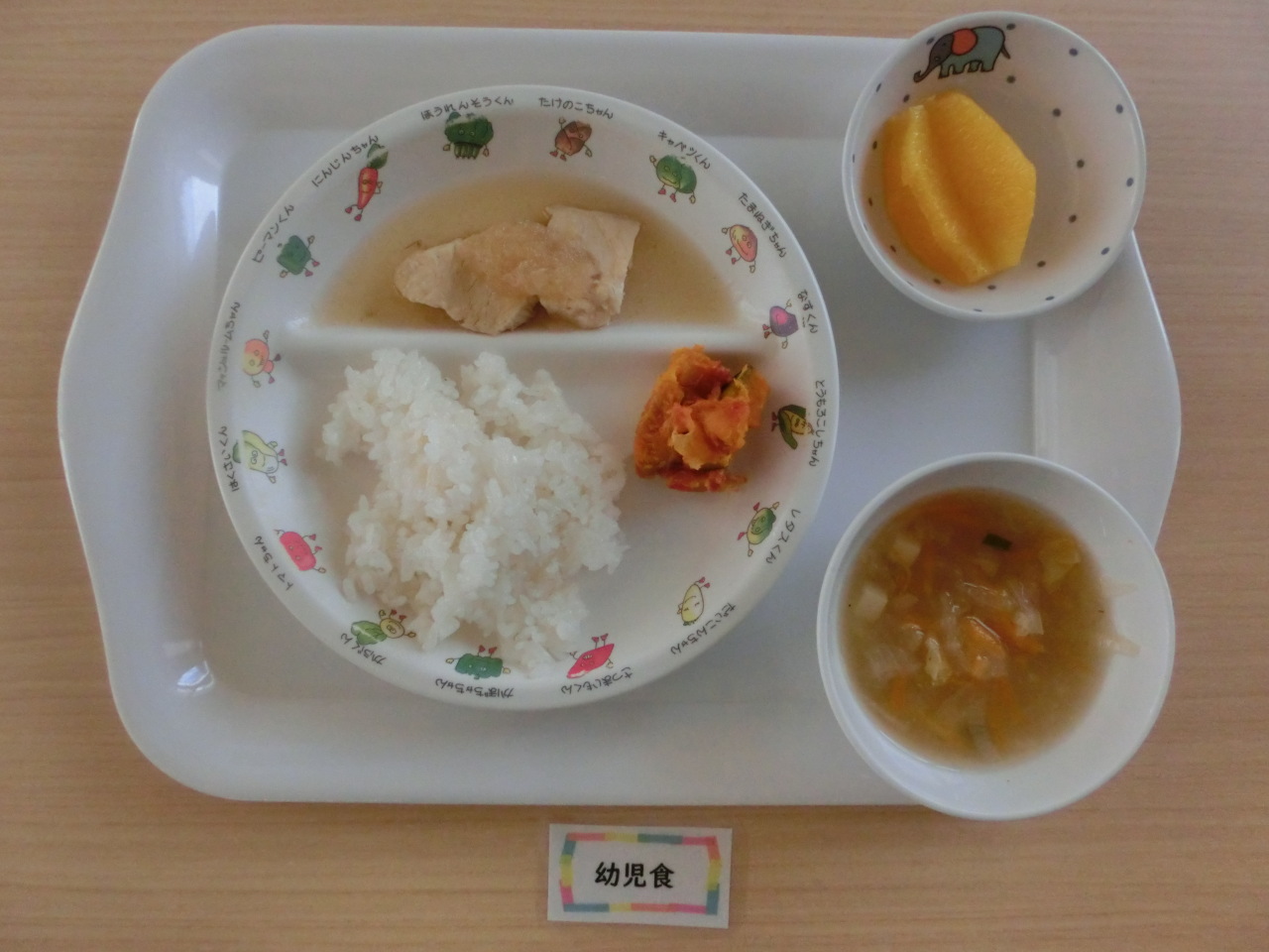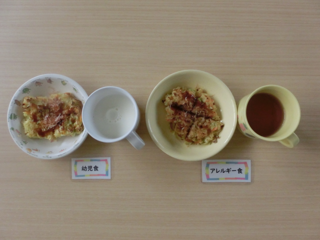 今日のおやつはお好み焼きでした。きゃべつ、人参、しらすを入れて焼きます。粉の量に対して倍の量のきゃべつを入れることで、生地があまり硬くならず冷めても食べやすいお好み焼きが作れます。きりん組では、「人参が入ってる!」「小さなお魚見えた!」などと言いながら食べてくれました。何人もがおかわりをして、みんなよく食べてくれました。