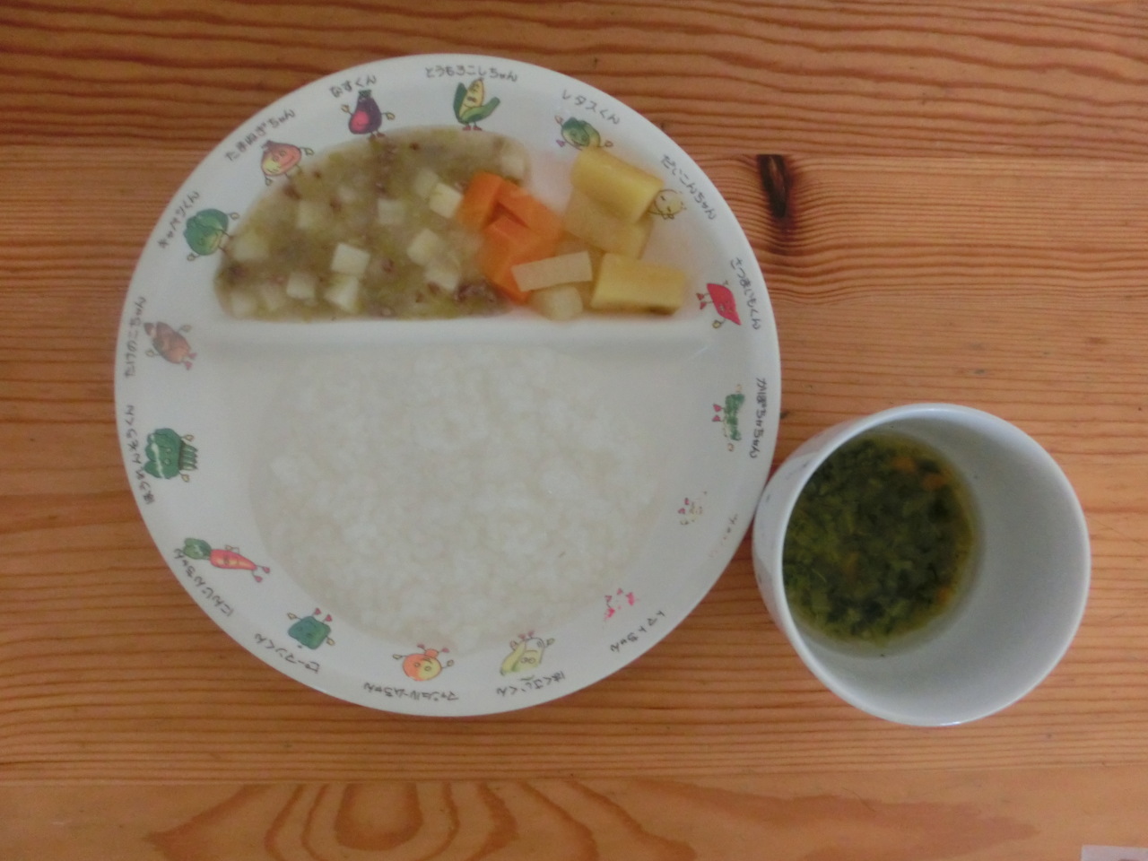 今日は肉じゃがです。和食の定番メニューですね。園の子どもたちは比較的、和食を好んで食べてくれています。今日もどのクラスもほとんど残食はありませんでした。園では昆布、煮干し、花かつおの合わせだしで、それぞれのうま味を取り入れただしを使用しています。離乳食も同じです。子どもの味覚は身体の成長と同時に形成されると言われています。薄味を基本にして、素材そのものの味を大切にしましょう。