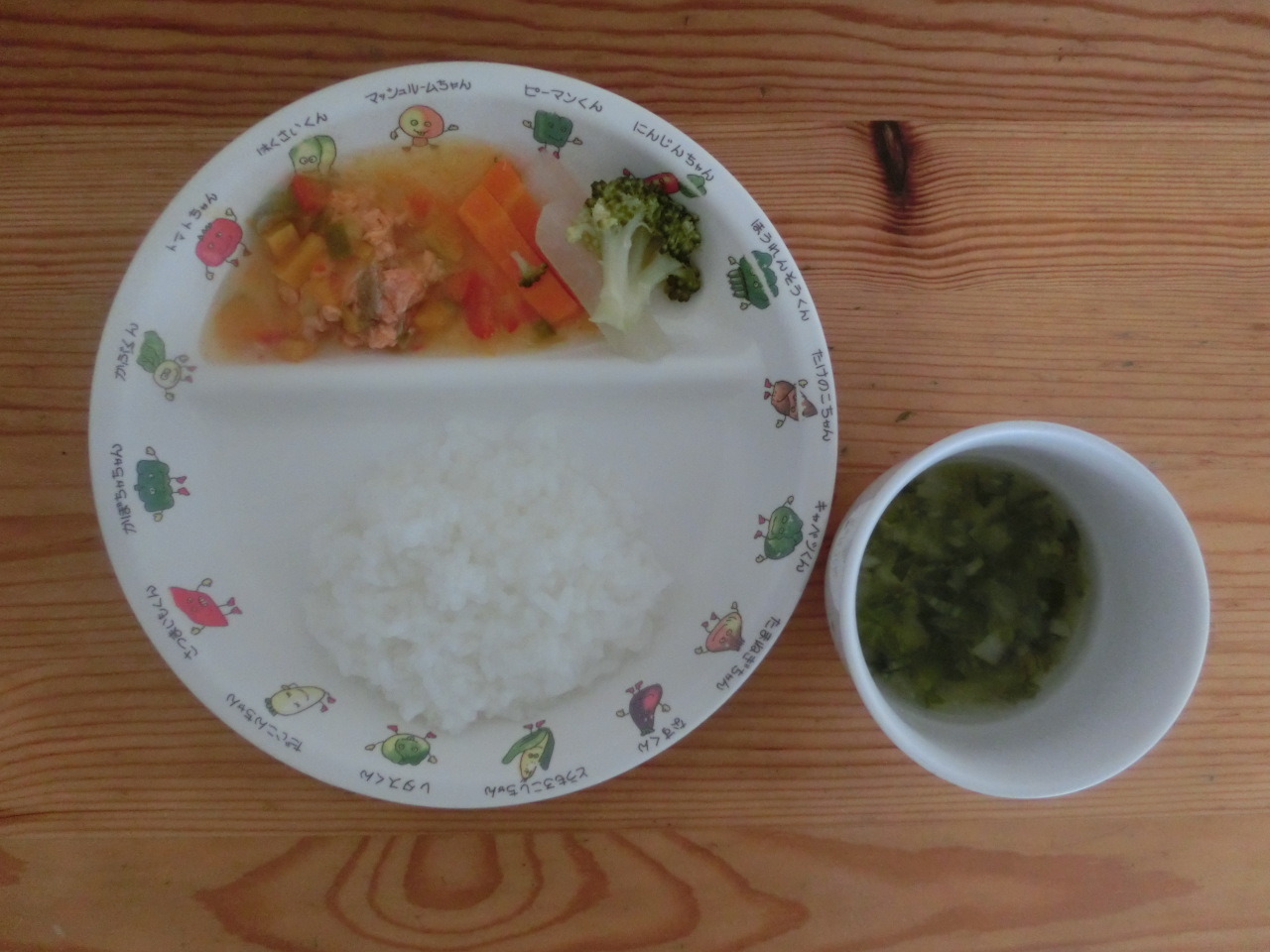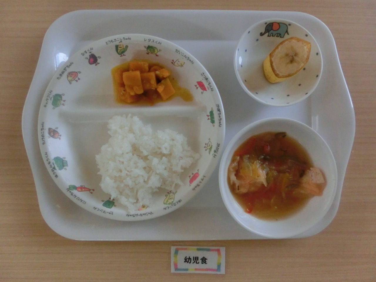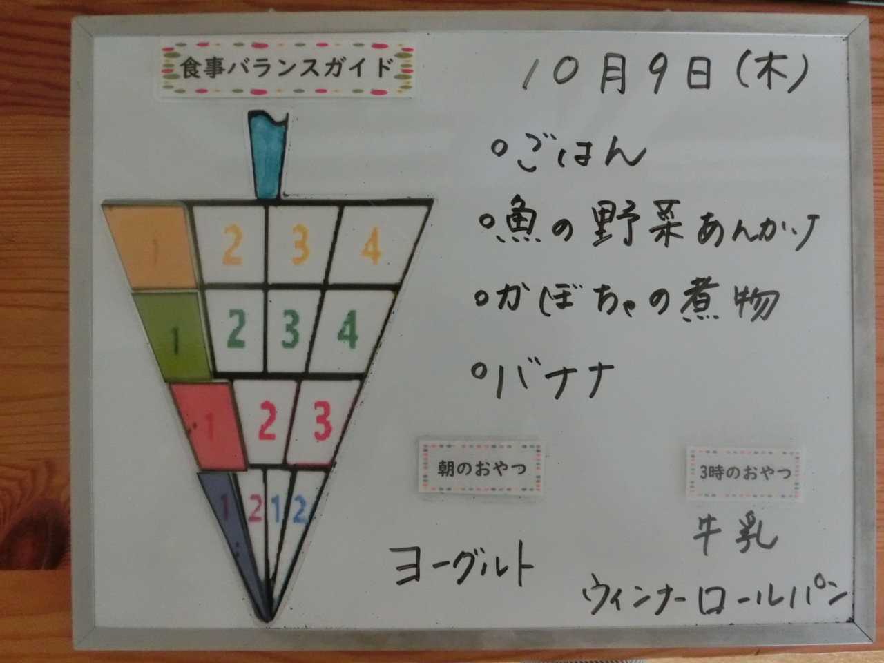 HOME 園の様子 10月9日の給食と食事バランスガイド 10月9日の給食と食事バランスガイド 2025/10/09 保育園での摂取量 今日のメニューは魚の野菜あんかけです。ピーマン、赤、黄パプリカを使用しました。パサパサして食べにくいお魚もあんかけをかけることで食べやすくなります。野菜の甘みも出てやさしい味にしあげました。 朝のおやつ 今日の給食 今日の給食(アレルギー対応食) 離乳食(後期食) 3時のおやつ(幼児食・アレルギー対応食) 離乳食(後期食)2回目 BACK HOME