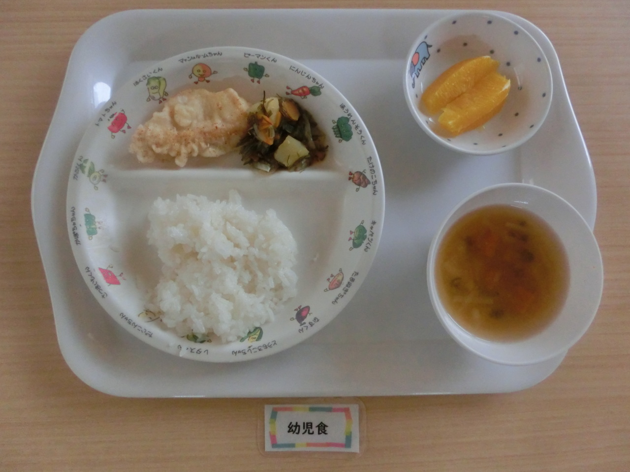 今日の副菜はさつまいもと刻み昆布の煮物です。さつま芋は秋が旬の食材で離乳食から幼児食のおやつまで幅広く使用する食材です。消化吸収もよく食物繊維が豊富でお腹の調子もよくしてくれます。ビタミン類も多く含まれていて栄養価の高い食材です。
