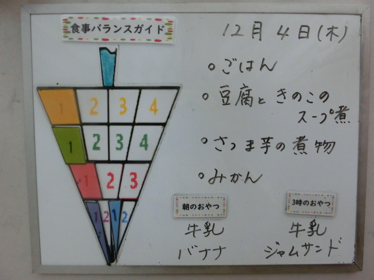 HOME 園の様子 12月4日の給食と食事バランスガイド 12月4日の給食と食事バランスガイド 2025/12/04 保育園での摂取量 今日のメニューは豆腐ときのこのスープ煮でした。スープとは言っても具だくさんで野菜もたっぷりと使います。急に寒くなったこの時期にあったかいおかずは何よりのごちそうですね。子どもたちもたくさん食べてくれました。 朝のおやつ 今日の給食 今日の給食(アレルギー対応食) 離乳食(初期食) 3時のおやつ(幼児食・アレルギー対応食) BACK HOME