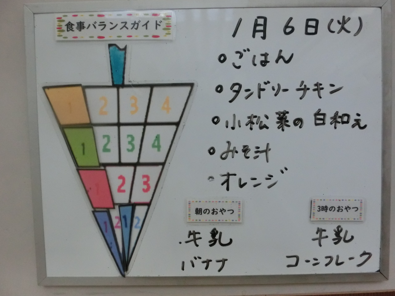 HOME 園の様子 1月6日の給食と食事バランスガイド 1月6日の給食と食事バランスガイド 2026/01/06 保育園での摂取量 昨年の12月10日に子どもたちが種まきをしたほうれん草の目が出てきました。冬に寒さにも負けず、大きく成長してっ収穫ができる日を子どもたちと一緒に楽しみに待ちたいと思います。 朝のおやつ 今日の給食 今日の 離乳食(中期食) 3時のおやつ(幼児食・アレルギー対応食) BACK HOME