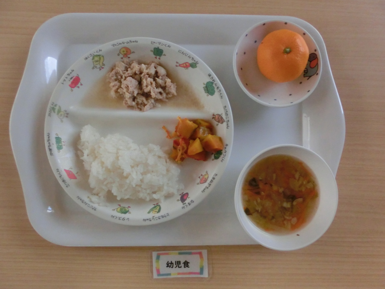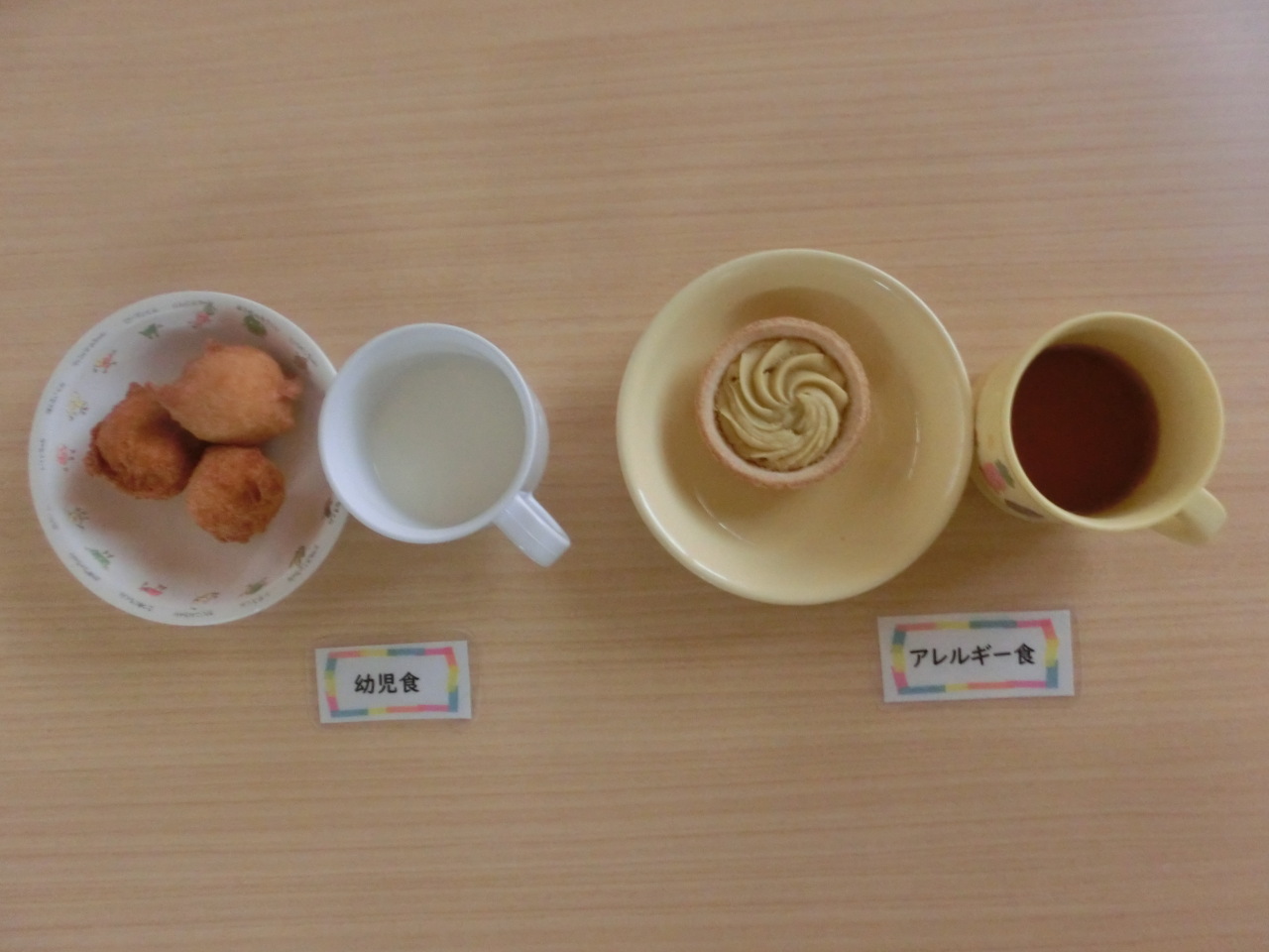 今日のおやつはアップル風船ドーナツです。りんごのおいしい季節になりました。りんごをすりおろして、生地に混ぜ込んで油で揚げています。ビタミン、ミネラル、カリウム食物繊維も豊富なりんごを使った子どもたちにも先生たちにも人気のおやつです。
