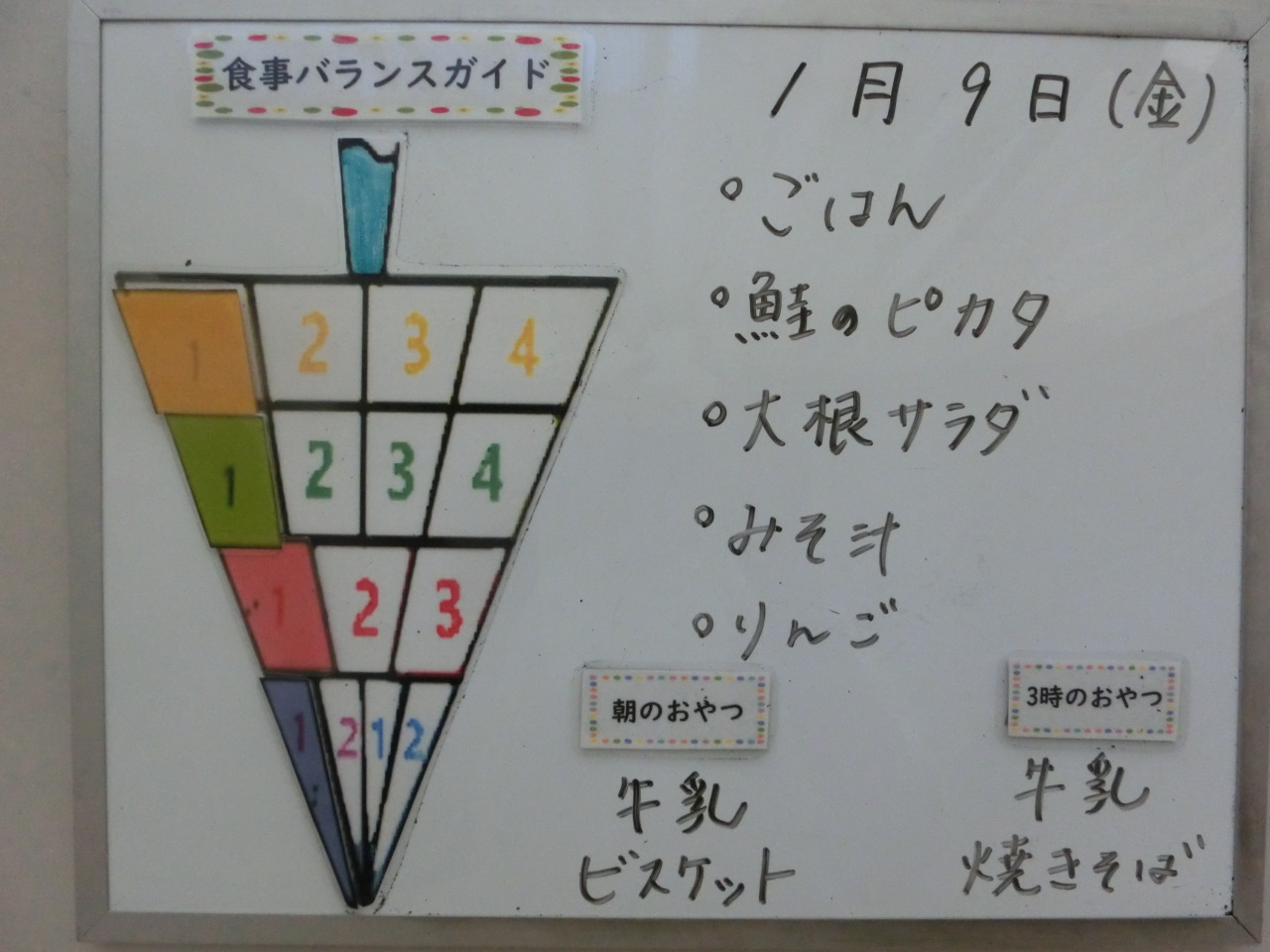 今日の副菜は大根サラダです。今週は大根を使った献立が3回ありました。冬が旬の大根は甘みもあり、ビタミンCもたっぷりです。栄養素をとるなら大根おろしがおすすめです。園ではみぞれ煮にして魚や鶏肉と一緒に炊いて大根おろしたっぷり食べてもらいます。